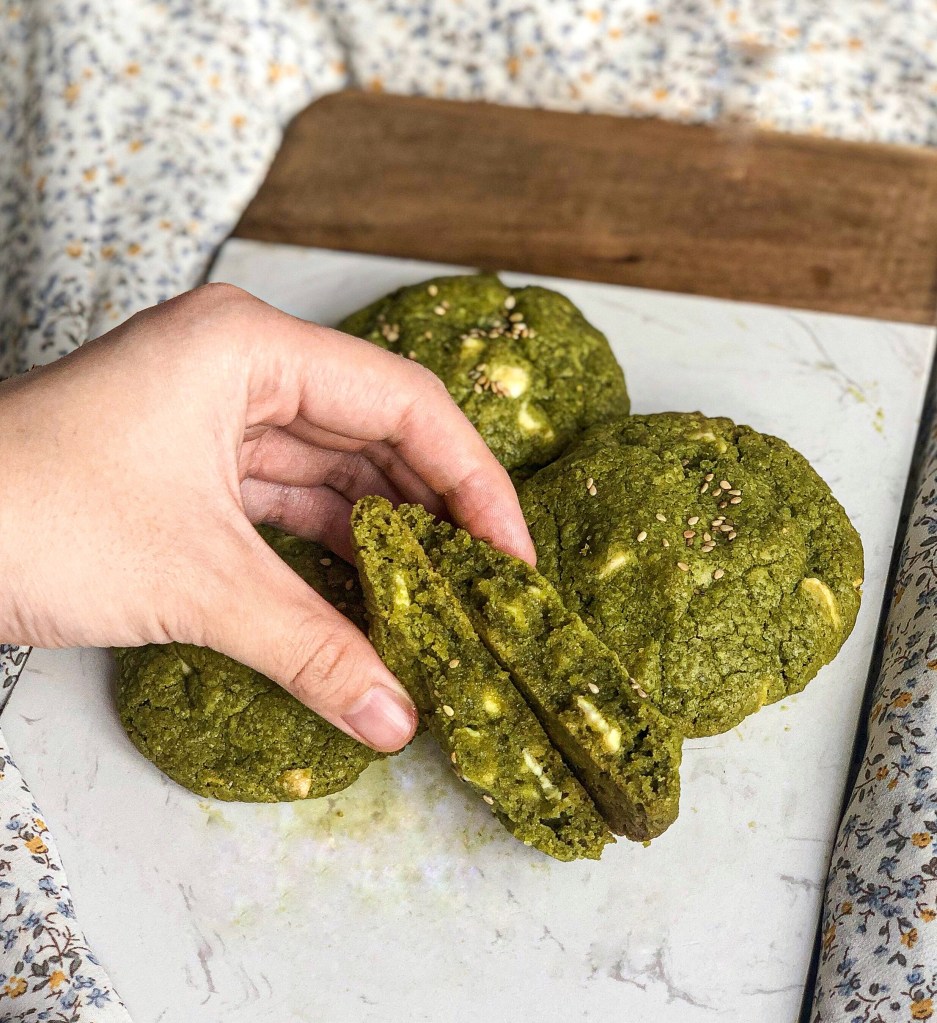 - Dans un autre saladier mélangez la farine, le matcha, la maïzena et la levure chimique